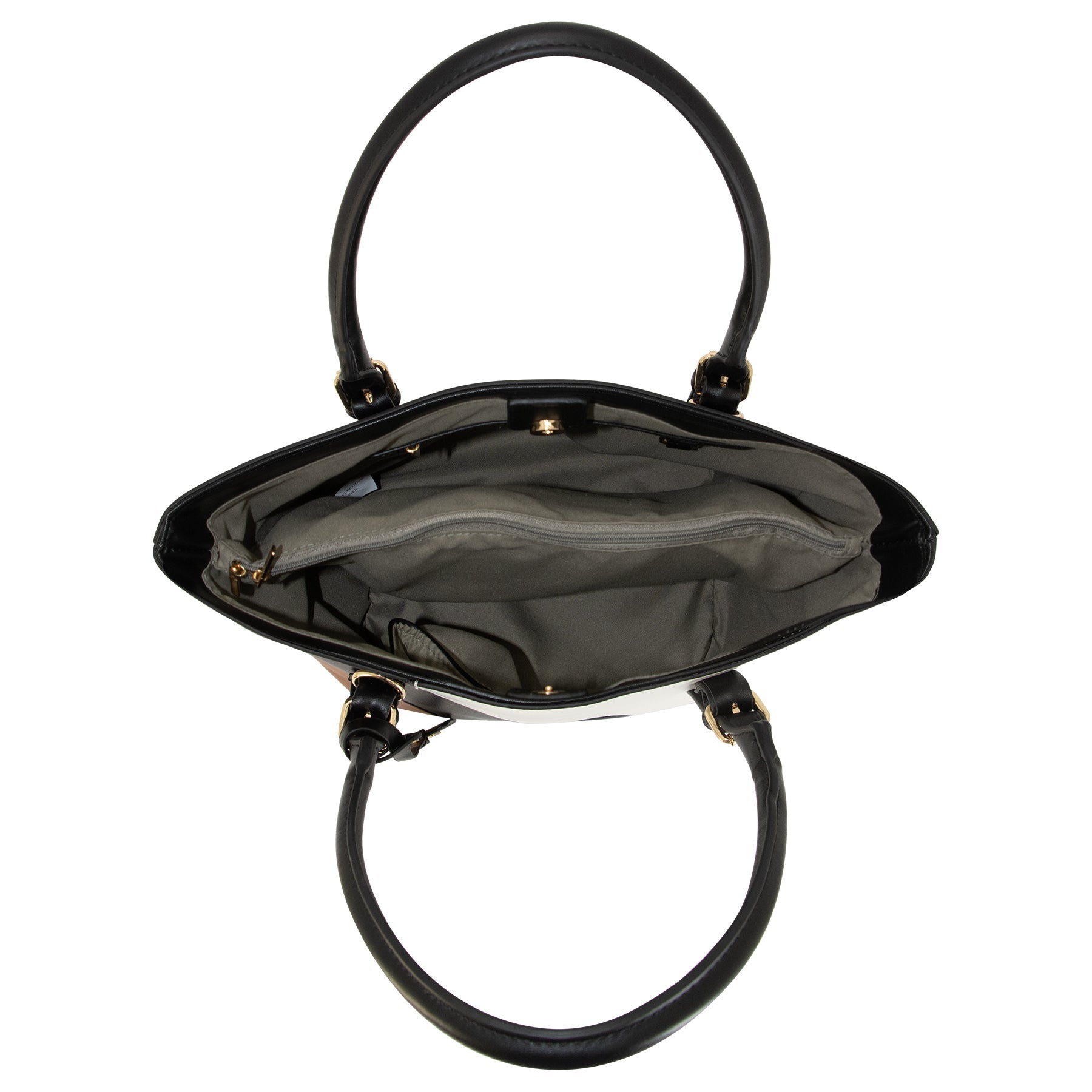 Go straight from the office to dinner with this irresistible top-handle bag, rendered in a sleek black-and-white finish with a small brown highlight touch that turns up the style power of any outsit it is paired with, let this classy piece add structure to flowy silhouettes and be the perfect finishing touch to a monochromatic ensemble.