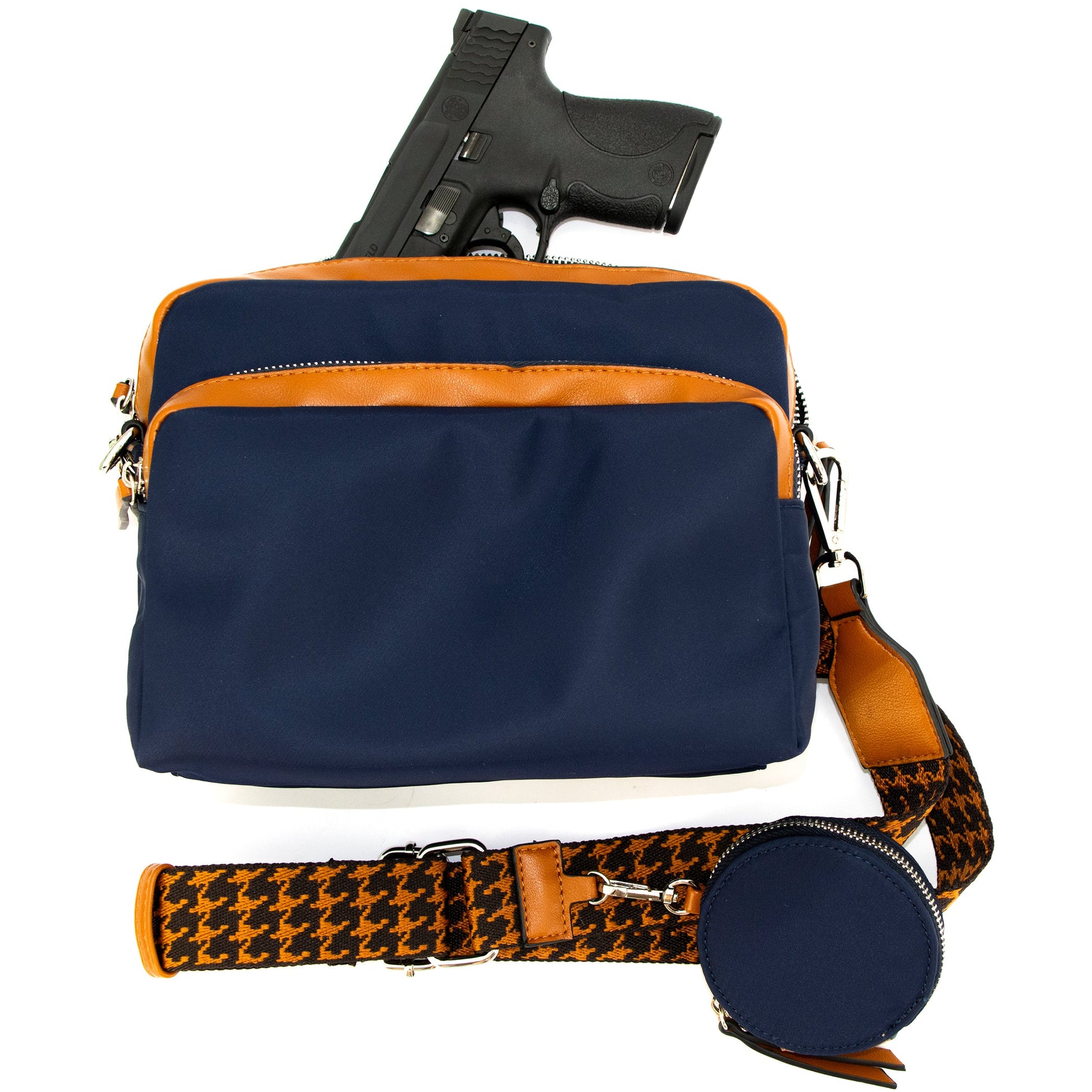 Harper has an individual CCW compartment located on the back of the bag resting closest to you when worn. The compartment is secured with a high-quality double-zipper giving you access from the top of the bag. One side of the CCW compartment is lined with hook-and-loop fastening for secure placement of your firearm. Included with Harper is a matching holster with hook-and-loop fastening on both sides for easy personalized placement for confidence and comfort while carrying.