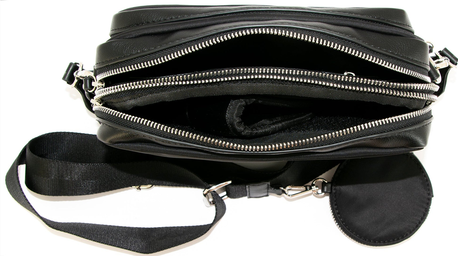 Made from durable water-resistant and stain-resistant nylon, Harper is the perfect bag for when you are on the go. Do not be fooled this lightweight bag is large enough to carry all your everyday essential items in either main zipped compartments as well as a separate detachable coin purse. The detachable fabric shoulder strap makes carrying comfortable for everyday use. The silver hardware goes beautifully with this crossbody and completes every look with a classy style.