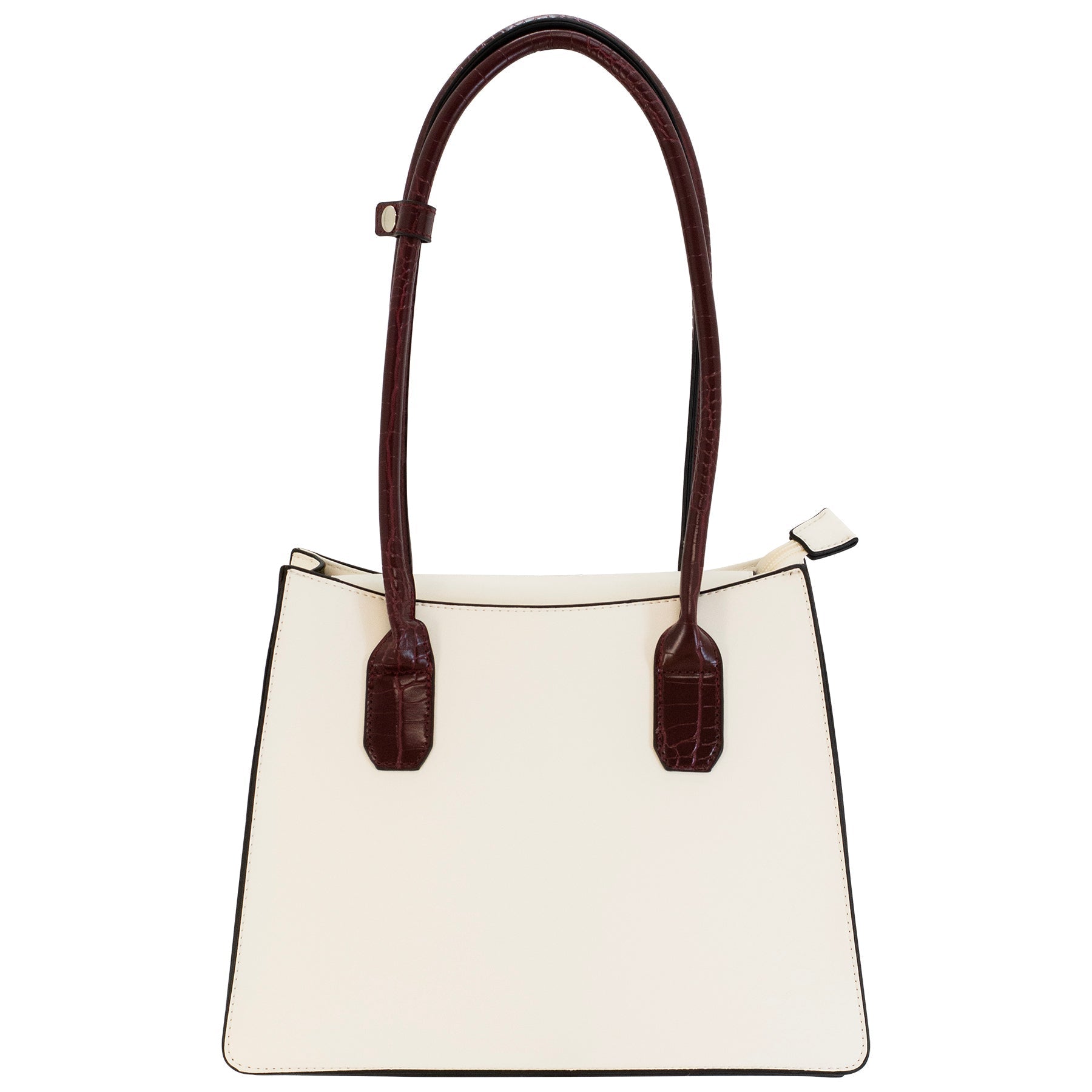 The "Cameleon Myla" concealed carry purse is a medium-sized tote shoulder bag tailored for the stylish woman who values both fashion and personal safety. Crafted from high-quality vegan leather with a sophisticated croc print handle, this purse seamlessly combines elegance and functionality. Discreetly designed for concealed carry, the ambidextrous CCW pocket is strategically placed on the side, maintaining a low-profile appearance. The Chic Defender is available in two timeless colors – ivory and black – allowing you to choose the one that complements your style. With a detachable and adjustable shoulder strap, the tote easily converts into a crossbody bag, offering versatility and comfort. The magnetic closure on the main pocket ensures quick and easy access, while the interior features two open pockets for organizing small items such as your cell phone or keys. The Chic Defender is not just a concealed carry purse; it's a fashion-forward accessory that empowers women to prioritize personal safety without compromising on style.