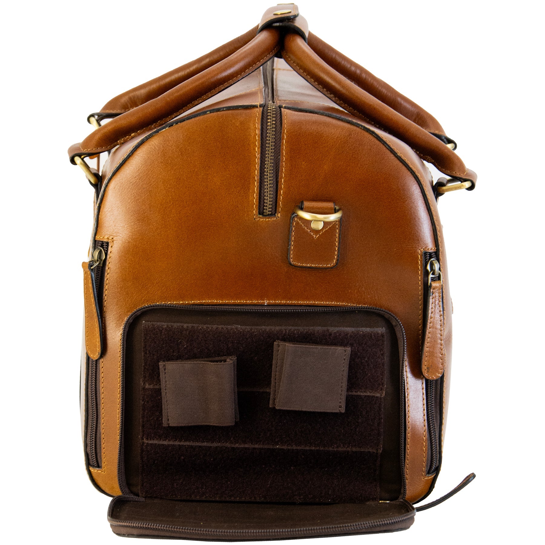 It includes zippered pockets and compartments on the outer part of the bag for easy access to smaller items, while a luggage sleeve ensures seamless integration with your suitcase. For added security and convenience, the duffel has concealed carry compartments with zippered side access on both ends, keeping your firearm discreet and easily accessible. Each end also features a compartment for a magazine holder, enhancing your overall preparedness.