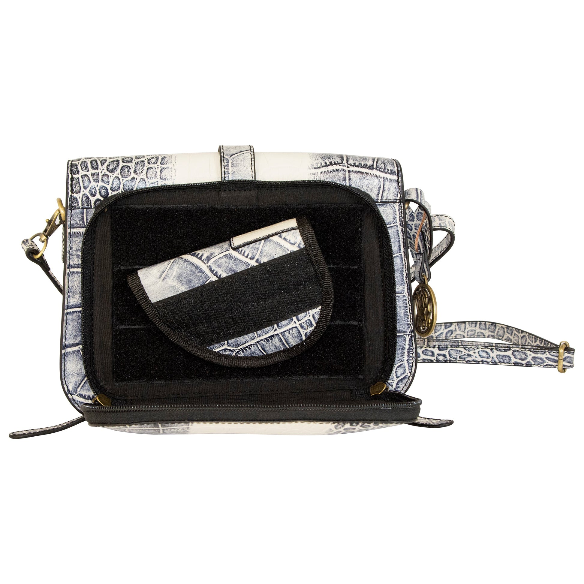 Safety is always our top priority when we designed this stylish Croc Crossbody! This bag is perfect for everyday use or a night out in town. Accented with gold-plated hardware, this spacious interior pocket will hold all of your everyday items safely and securely. The adjustable strap allows you to carry this bag at a comfortable level if your handgun ever needs to be drawn.